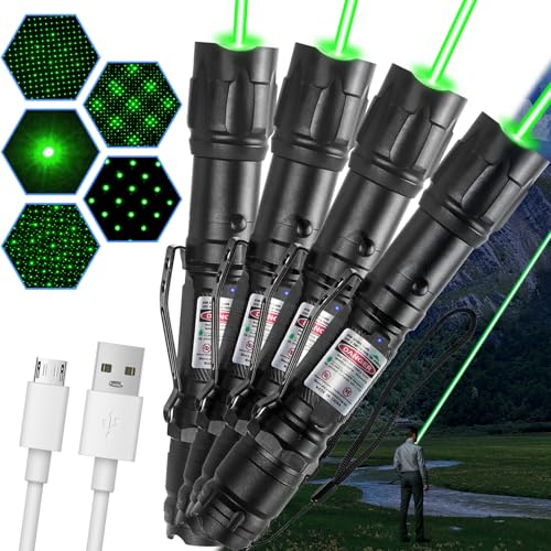 LETEAPII [4 Packs] Green Light Flashlight Rechargeable, Long Range Adjustable Focus Tactical Beam for Outdoor Journeys, Camping, Presentations, TV/LED/LCD Screens, and Stargazing