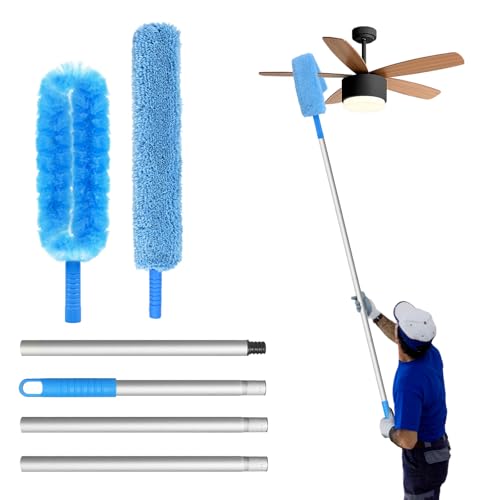Storystore Ceiling Fan Cleaner Duster with Extension Pole, Feather Dusters for Cleaning Cobweb Cleaner (U-Shape and Coral Fleece)