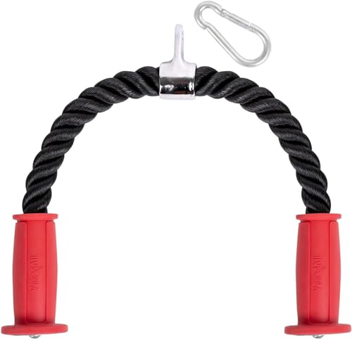 Yes4All Deluxe Tricep Rope Cable Attachment 27 inch, Exercise Machine Attachments Pulley System Gym Pull Down Rope with Carabiner, Red Black - Big handle