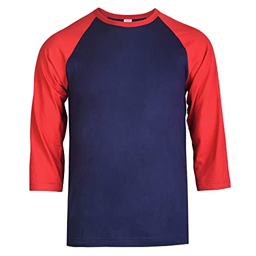 TOP PRO Men's 3/4 Sleeve Casual Raglan Jersey Baseball Tee Shirt (S, Dark Red/Navy)