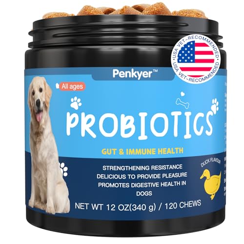 Probiotics for Dogs,Dog Probiotics for Yeast, Itchy Skin and Itchy Ears, Digestive Enzymes with Prebiotics for Digestive Health, Probiotic Chews for Dogs Support Immunity Health - (Duck 120 Ct)