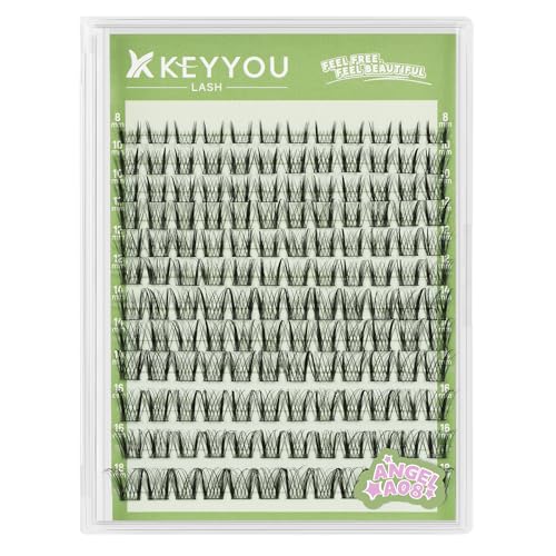 KEYYOU LASH clusters 144Pcs D Curl Angel Eyelash Extension Thick Wispy Natural Band Lash with Waterproof DIY Lash Extension at Home(Angel A08-D-8-18MIX)