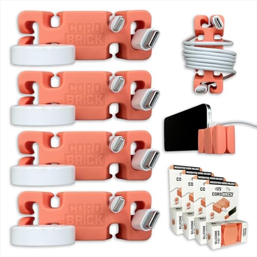 CordBrick 4pk Weighted Cord Holder for Nightstand. Phone Charger Cable Management for Travel. Phone Accessory. Stocking Stuffers for Adults. Multipurpose Gift for Home and Office. Silicone. Coral