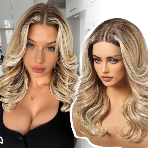 KOME Lobbi Ombre Blonde Synthetic Lace Front Wig,13X5X1 Glueless Shoulder Length Curly Bob Wigs for Women Daily Use 18IN(#TT6/1603)