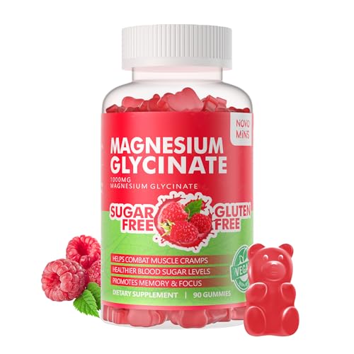 90 CT Magnesium Glycinate Gummies 1000mg - Sugar Free Magnesium Potassium Supplement with Vitamin D, B6, CoQ10 for Calm Mood & Sleep Support - 90 Raspberry Gummies