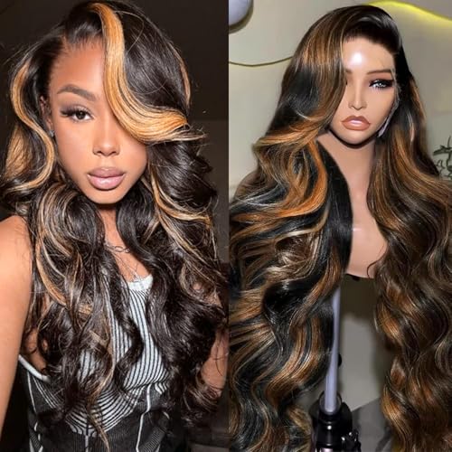 Tuneful 28 Inch 180 Density Honey Blonde Ombre 13X6 HD Lace Frontal Wig Human Hair Glueless Highlight 4/27 Colored Straight Lace Front Wigs Human Hair Pre Plucked for Women