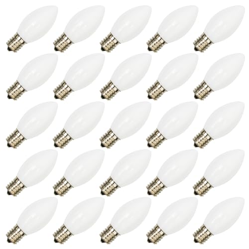 SUNSGNE C9 LED Replacement White Christmas Light Bulbs, 25 Pack C9 Plastic LED Christmas Bulbs for Christmas Outdoor Patio String Lights, E17 Intermediate Base- 0.6 Watts- 2200K Warm White