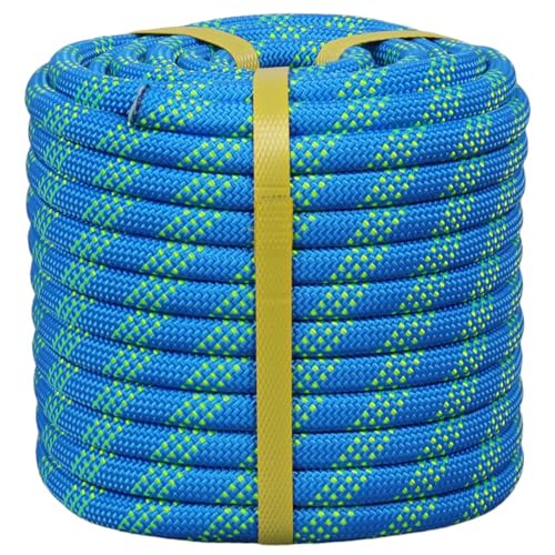Double Braided Arborist Rope - 1/2 Inch x 100 Feet Polyester High Strength Climbing Rope for Tree Work, Halyard, Sailing (Blue/Green)
