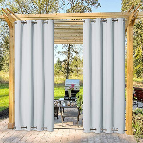 NICETOWN Outdoor Curtain Waterproof for Patio Extra Long, Windproof Thermal Insulated Top and Bottom Stainless Steel Grommets Blackout Outdoor Drape for Porch, Silver Grey, 1 Piece, W52 x L108
