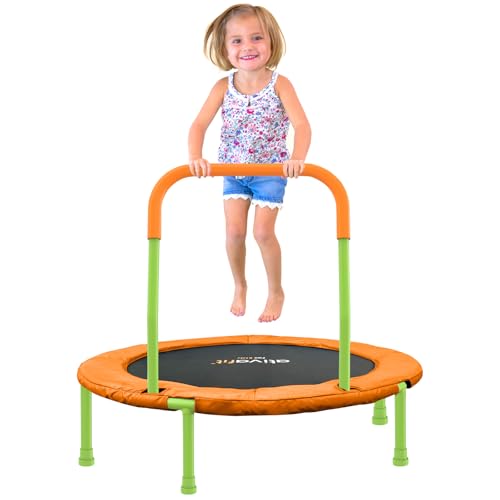 Ativafit 36inch Mini Toddler Trampoline for Kids Ages 1-6 Indoor Outdoor Folding Small Rebounder Trampoline with Foam Handle Safety Padded Cover Fun for Kids (Orange and Green)