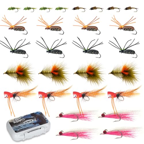 BRAIRIA 28PCS Stillwater Fly Fishing Flies Set for Trout/Dry、Nymphs & Streamers/Best Gift for Fly Fisher