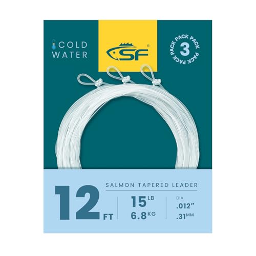 SF Pre-Tied Loop Fly Fishing Salmon Tapered Leader Nylon(3 Packs) 12FT 15LB