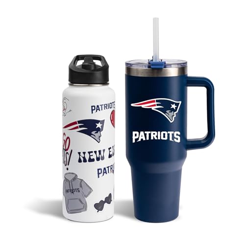 The Memory Company Officially Licensed NFL - New England Patriots 34oz Team Spirit Water Bottle and 40oz Game Day Tumbler with Straw Set
