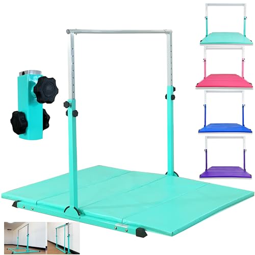 MARFULA Gymnastic Bar with Mat for Kids Gymnastic Kip Bar with Mat Horizontal Bar Teal Bar Gymnastic Training Equipment for Kids 3-15 Years Home and Club Use
