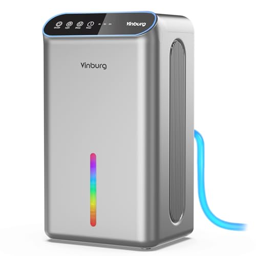 Dehumidifiers for Home (85 OZ Water Tank, 800 sq.ft) Quiet Small Dehumidifier for Basement Bedroom Bathroom with Drain Hose, 3 Gear Timer, Sleep Mode, Auto Shut Off, 7 Color Ambient Light