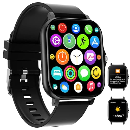 PLEIVO Smart Watch, 1.81" Upgraded Full Touchscreen Smart Watch for Android iPhones with Heart Rate Blood Pressure Monitor, Multiple Sports Fitness Tracker with Smart Watches for Women Men (Black)