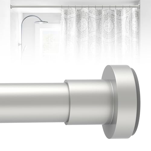 HTZON Silver Shower Curtain Rod 34 to 43 In,Short Spring Tension Shower Rod for Bathroom Kitchen Doorway,Small Heavy Duty Adjustable Shower Curtain Tension Rod No Drilling Non-Slip Easy Install,Silver