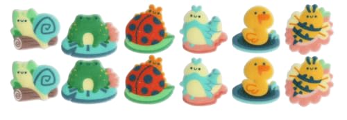 Spring Critters - Duck, Snail, Caterpillar, Ladybug, Bee Edible Sugar Cake Toppers, 12 Count