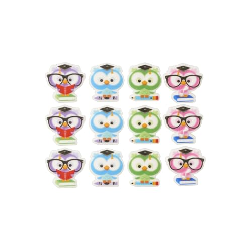 Graduation Owl Shape Edible Sugar Cake Toppers, 12 Count