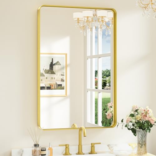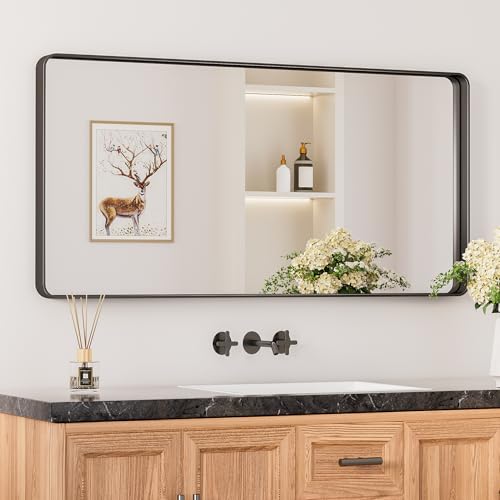 【Modern Elegance Meets Versatile Styles】 Embrace the modern sophistication of Keonjinn Rounded Metal Frame Mirror. With a clean rounded rectangular shape and subtle details such as a seamless frame and a floating effect, the wall mirror is meticulously designed to add a delicate touch to any decor in your bathroom, bedroom, living room, fireplace or entryway.