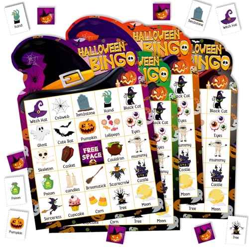 Blosssound Halloween Bingo Game Set Witch Hat Bingo Cards for 24 Players Witch Party Game for Family Activities Holiday Cards for Halloween Party Favor