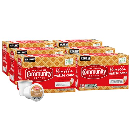 Community Coffee Vanilla Waffle Cone 60 Count Coffee Pods, Ice Cream Flavored, Compatible with Keurig 2.0 K-Cup Brewers, 10 Count (Pack of 6)