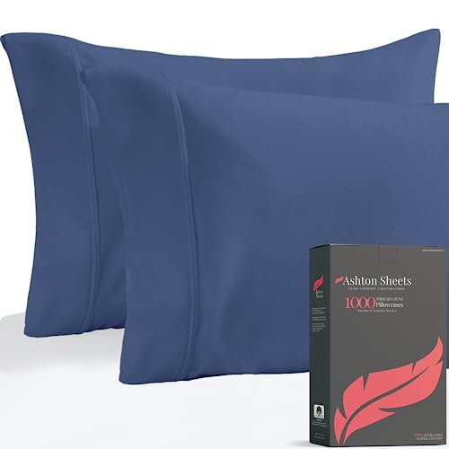 Ashton Sheets Luxury Egyptian Cotton King Pillow Cases Set of 2 - High Thread Count King Pillowcases, Soft, Sateen Weave Cooling Pillowcase, Extra Long Staple Hotel Quality Pillow Cover - Deep Blue