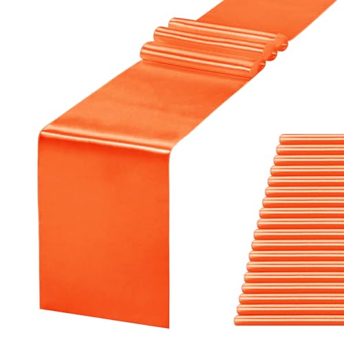 JEVIX 20 Pack Satin Table Runner 12 X 108 Inch Silk Table Runner for Party,Wedding, Birthday, Banquets,Decoration(Orange)