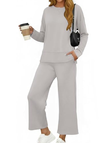 Glamaker Women Sweat Suits 2 Piece Lounge Set Casual Long Sleeve Pullover Tops Sweatpants 2024 Fall Outfits Grey XL