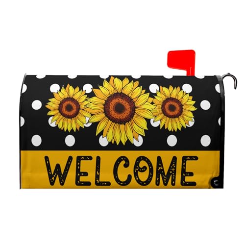 Spring/Summer Sunflower Mailbox Cover - Magnetic Floral Black and White Dot Standard Size 18 X 21 Holiday Mailbox Wrap Post Letter Box Decorative for Home Outdoor Garden