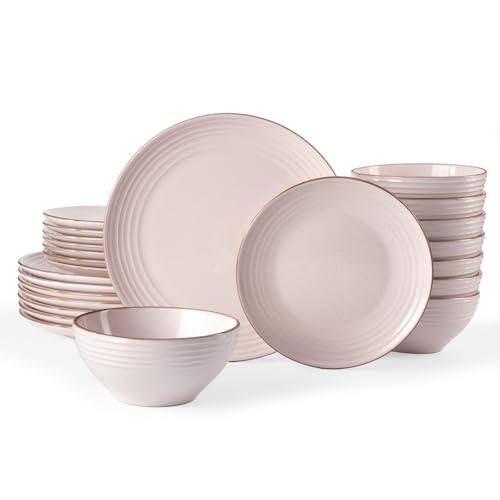 Famiware Jupiter Dinnerware Set, Plates and Bowls Dish Sets for 8 (24 Pieces), Microwave and Dishwasher Safe Stoneware Speckled Tableware, Chip and Scratch Resistant, Light Pink