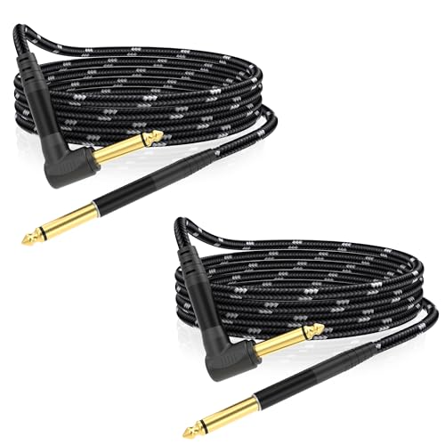 JOLGOO 1/4 Inch TS Instrument Cable 10ft 2-Pack, Right-Angled to Straight 6.35mm Guitar Bass AMP Cord, Mono Audio Line for Electric Guitar, Bass, Keyboard, Amplifier, Speaker