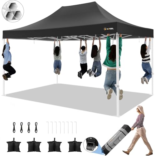 HOTEEL 10x15 Pop up Canopy Tent for Parties, Heavy Duty Easy Setup Tent Without Sidewalls, Outdoor Commercial Instant Gazebo for Wedding Event, with Roller Bag & Sand Bags, Black(Hexagonal Frame)