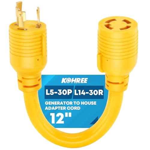 Kohree NEMA L5-30P to L14-30R Adapter Cord, 3 Prong to 4 Prong Generator Adapter, STW 10 AWG 12", 30 Amp L5-30P Male Generator to L14-30R Transfer Switch Female Adapter