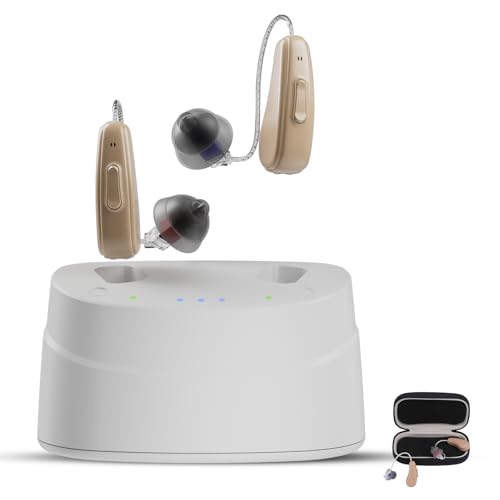 Hearing Aids, Hearing Aids for Seniors, Rechargeable Hearing Aid with Noise Cancellation, 5-Level Button Volume Control, OTC Hearing Amplifier for Moderate Hearing Loss, Clear Sound