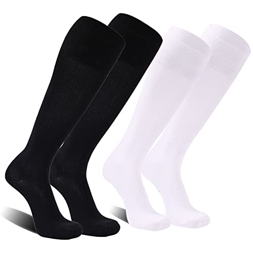 FOOTPLUS Soccer Socks, Unisex Over Knee High Solid Team Sports Volleyball Softball Baseball Homecoming Socks for Back to School,2 Pairs Black and White,Large