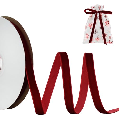 TONIFUL Burgundy Velvet Ribbon 3/8 Inch x 10yds, Vintage Velvet Ribbons, for Christmas Wreath Decoration Handmade Craft Ornaments Gift Wrapping & Bow Making, Valentine's Day Wedding Bouquet Packaging