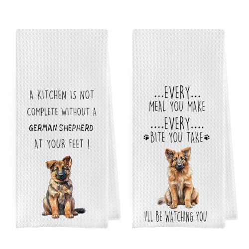 Gqtt German Shepherd Dish Towels Set - Funny German Shepherd Gifts Waffle Weave Kitchen Towels, Decorative Hand Tea Towels for Bathroom Kitchen (1624 Inches Set of 2)