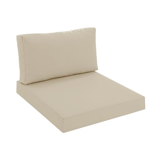 Summsun Patio Furniture Cushions Replacement, Outdoor Deep Seat Couch Cushion and Backrest Pillow with Waterproof Removable Cover for Sectional Sofa Set, 25.6 x 25.6 Inch, Cream
