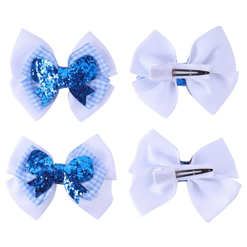 Blue White Gingham Hair Bow Clips for Girls - 2 Pack Wizard of Oz Hair Accessories, Halloween Cosplay, School Play & Themed Party Clips (B)