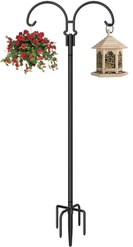 Artibear Double Shepherd Hooks for Outdoor, 76" Heavy Duty Bird Feeder Hangers Garden Hooks with 5-Prong Base, Outside Hanging Pole for Plant Baskets, Solar Light Lanterns, Wind Chimes, 1 Pack