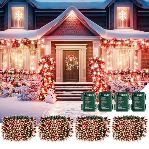 Brightown Christmas Lights Outdoor Battery Operated, 4 Pack Total 66FT 200 LED Battery Fairy Lights with Timer,8 Modes,Waterproof Christmas String Lights for Outside Indoor Bedroom, Red & Warm White