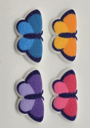 Pink, Yellow, Blue, and Purple Butterfly Edible Sugar Cake Toppers, 12 Count