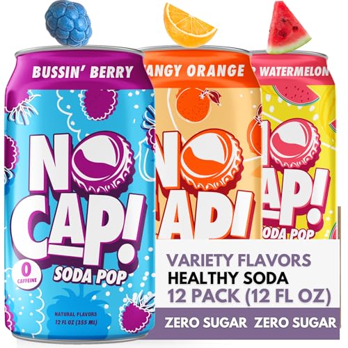 No Cap! Healthy Soda, Zero Sugar Soda Pop Drink, Zero Calories | Caffeine Free, Vegan, Gluten Free, For Kids & Adults 12 Oz, 12 Pack (Variety Pack) Orange,Watermelon & Berry