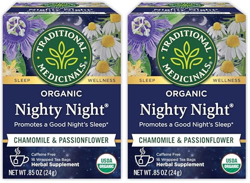 Traditional Medicinals Organic Nighty Night with Passionflower Herbal Tea, Promotes a Good Night’s Sleep, 16 Tea Bags (Pack of 2)