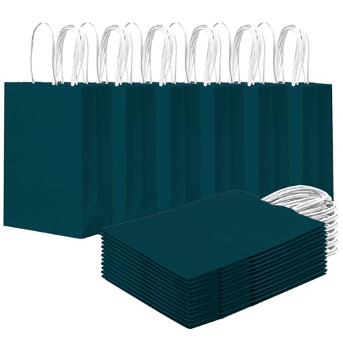 qiqee 24PCS Small Gift Bag with Handles Bulk 8.3"x6"x3" Gift Bags Green Blue Bags Multiple Uses (Small Size)