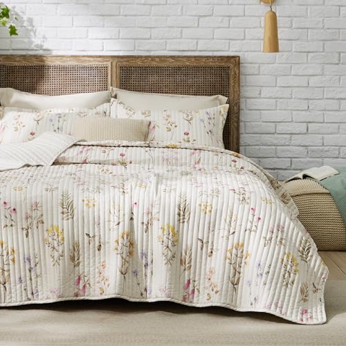 Bedsure Floral Quilt Queen Size - Reversible Autumn Botanical Quilt Bedding, Lightweight Microfiber Bedspread, Soft Coverlet for All Seasons (90"x96")