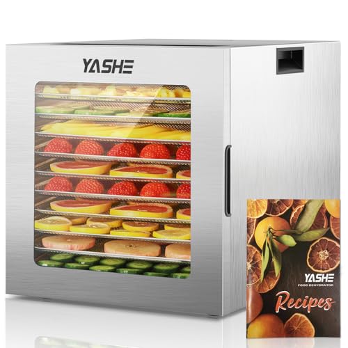 YASHE Food Dehydrator Machine, 10 Stainless Steel Food Dryer, 10 Presets, 48H Timer and Temperature Control, 850W Dehydrators for Food and Jerky, Herbs, Meat, Fruit, Dog Treats, Recipes Book Included