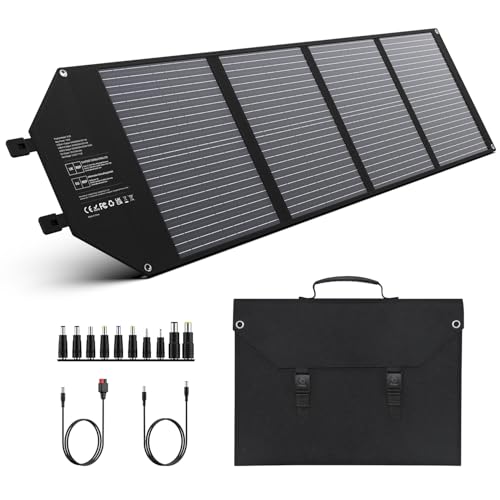 EnginStar 100W Foldable Solar Panel w/ 18V DC Outlet for Portable Power Stations EnginStar/Jackery/Rockpals/Flashfish, Portable Solar Generator with USB-A USB-C QC 3.0 for Outdoor Camping Van RV Trip