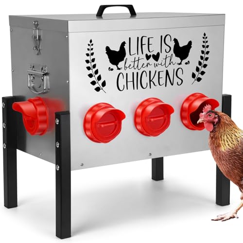 TGEYD 50LB Large Automatic Chicken Feeder – 8 Feeding Ports, No-Waste Poultry Feeder, with Adjustable Legs & Locking Lid